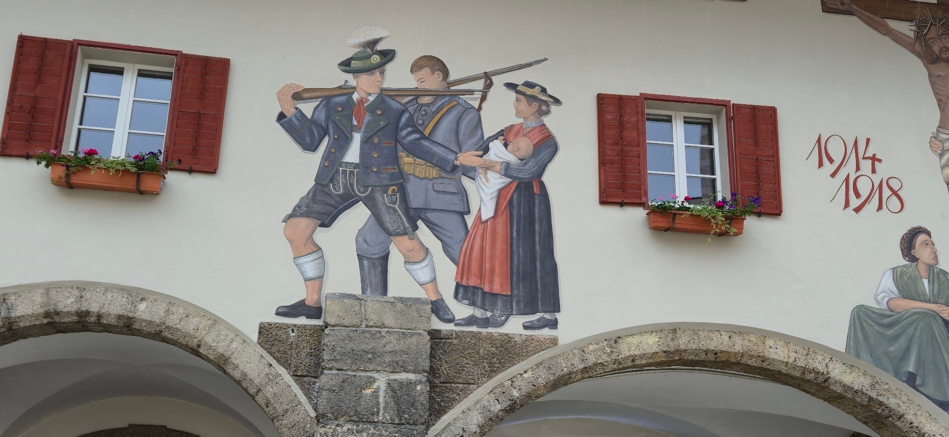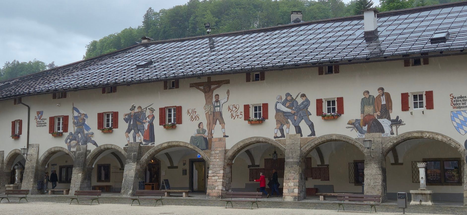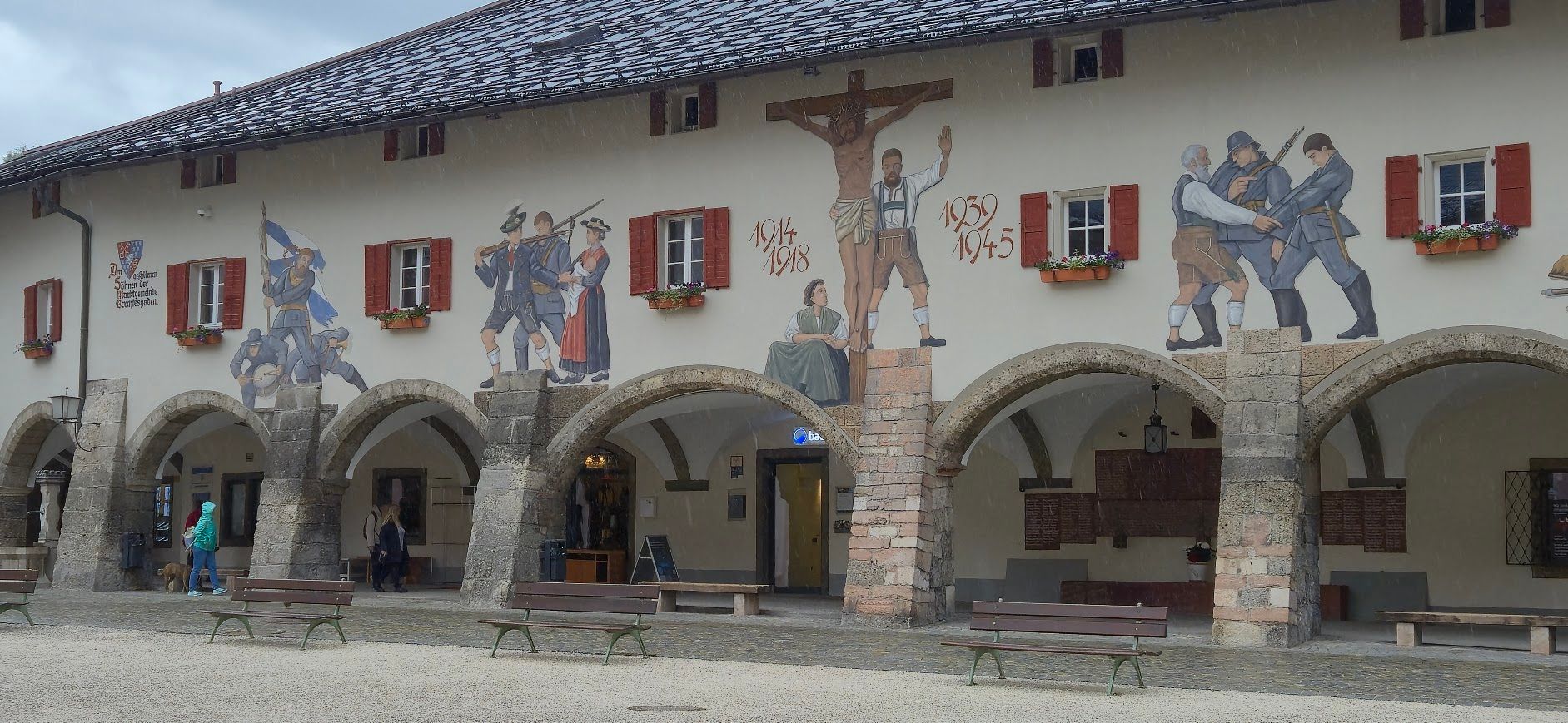 In het hart van Berchtesgaden, aan het plein tegenover het voormalige Koninklijk Paleis, bevindt zich een indrukwekkend wereldoorlogenmonument dat de geschiedenis van de streek tastbaar maakt. Wie bij de fontein in het midden van het plein gaat staan, krijgt een prachtig overzicht van het monumentale fresco dat in 1929 werd geschilderd door de Kempten-kunstenaar Josef Hengge (1890–1970). De arcade waarin het zich bevindt, deed ooit dienst als landbouwopslag en stalruimte, maar werd later onderdeel van het kasteelplein.
