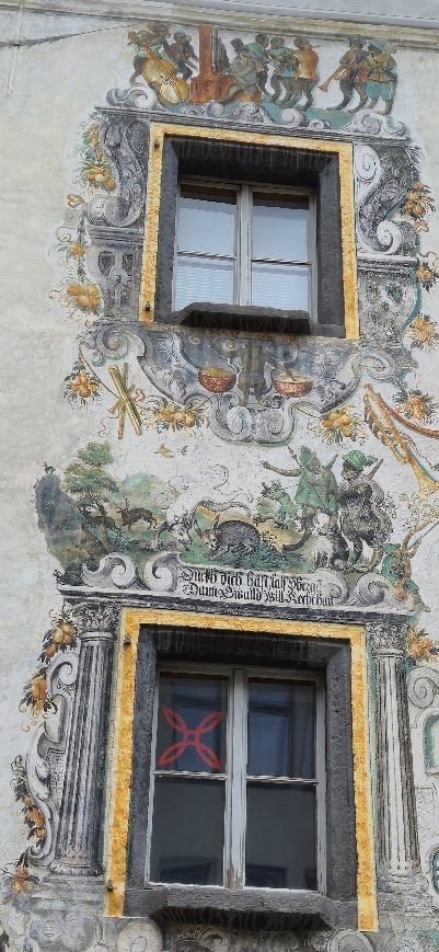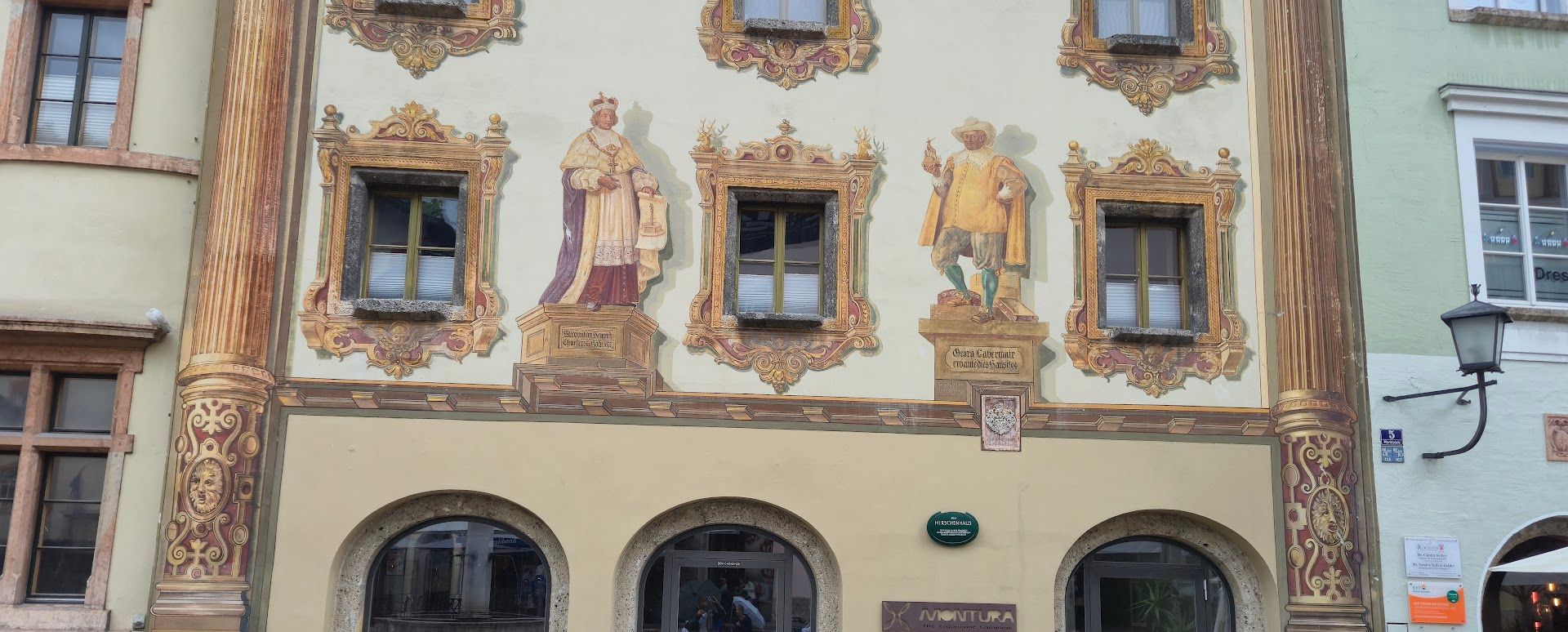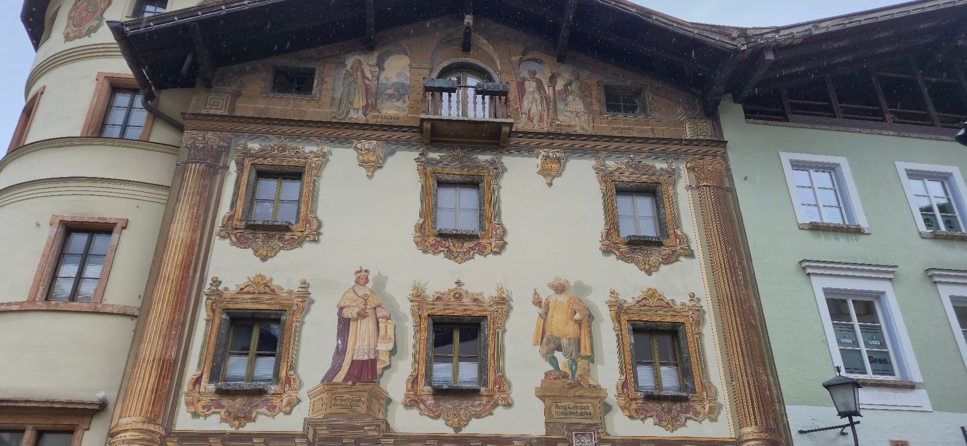 Het Hirschhaus in Berchtesgaden is één van de meest karakteristieke gebouwen in het historische centrum van de stad. In 1594 gaf de burgemeester van Berchtesgaden, de heer Labermaier, opdracht voor de bouw van het gebouw, in 1610 gevolgd door de fresco's aan de buitenkant. Fresco’s worden op nat pleisterwerk aangebracht; de kleuren dringen diep in de pleister binnen. De markante hertenafbeeldingen op de façade — waaraan het gebouw zijn naam dankt — zijn typische voorbeelden van Beierse volkskunst en weerspiegelen de jachtcultuur en natuurtradities van de regio. Je ziet o.a. op de voorkant de heer Labermaier.