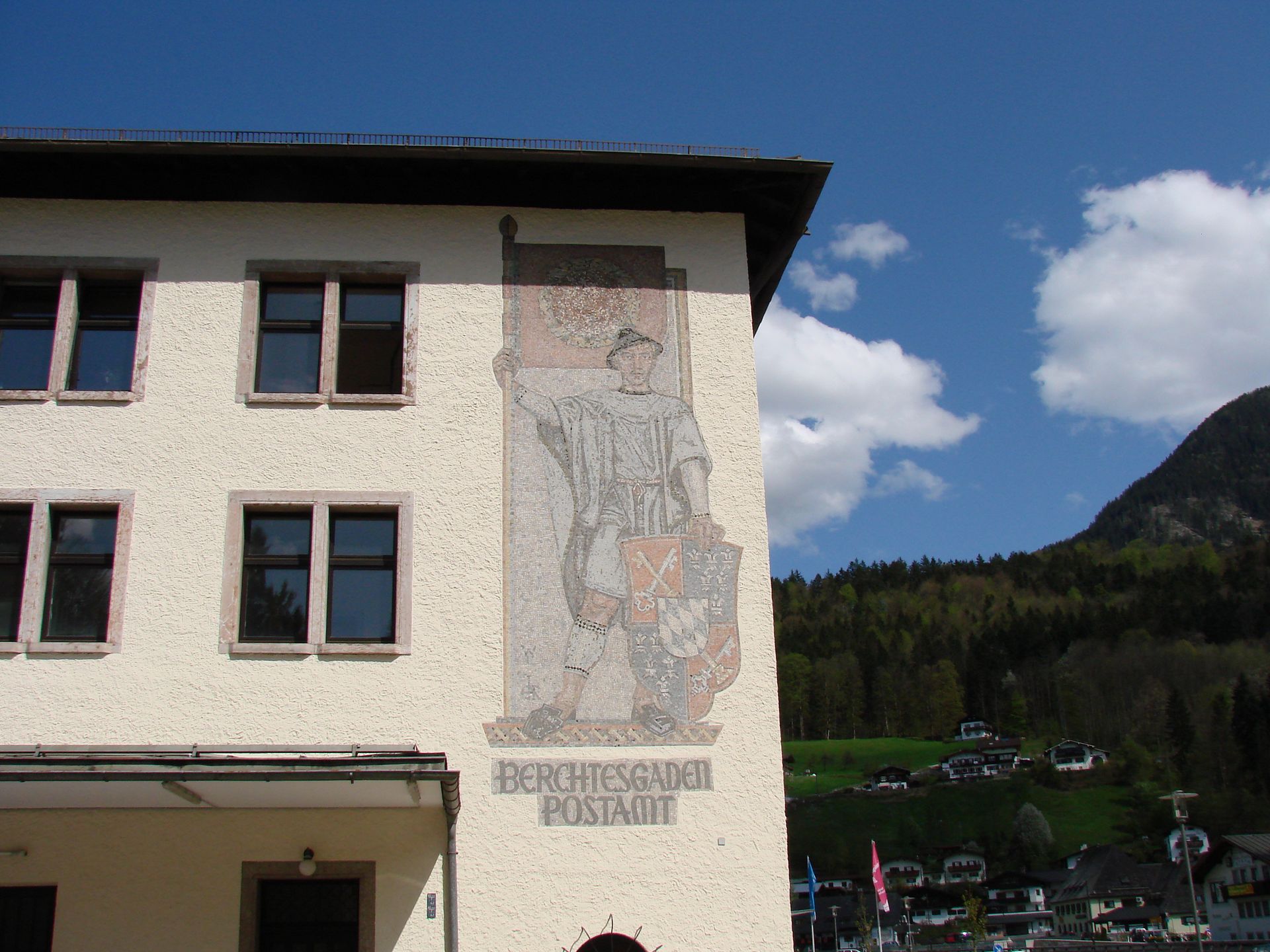 Het Postamt van Berchtesgaden is een van de weinige gebouwen in het centrum waar nog zichtbare sporen te vinden zijn van het nationaalsocialistische tijdperk — maar dan uitsluitend in de vorm van verwijderde symbolen.