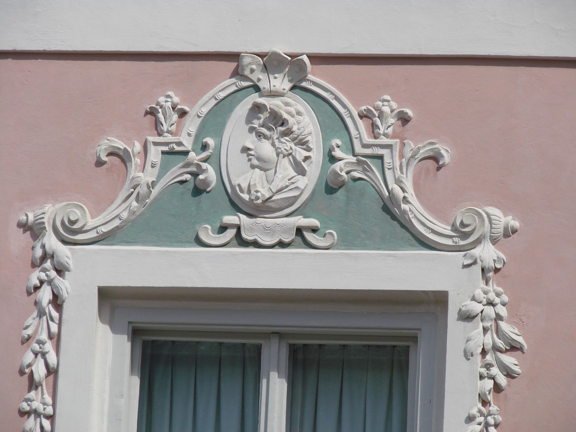 - Detail Postkantoor - Ingezoomd op de plek waar de Swastika ( het hakenkruis) uit de oorlog zich bevond.
