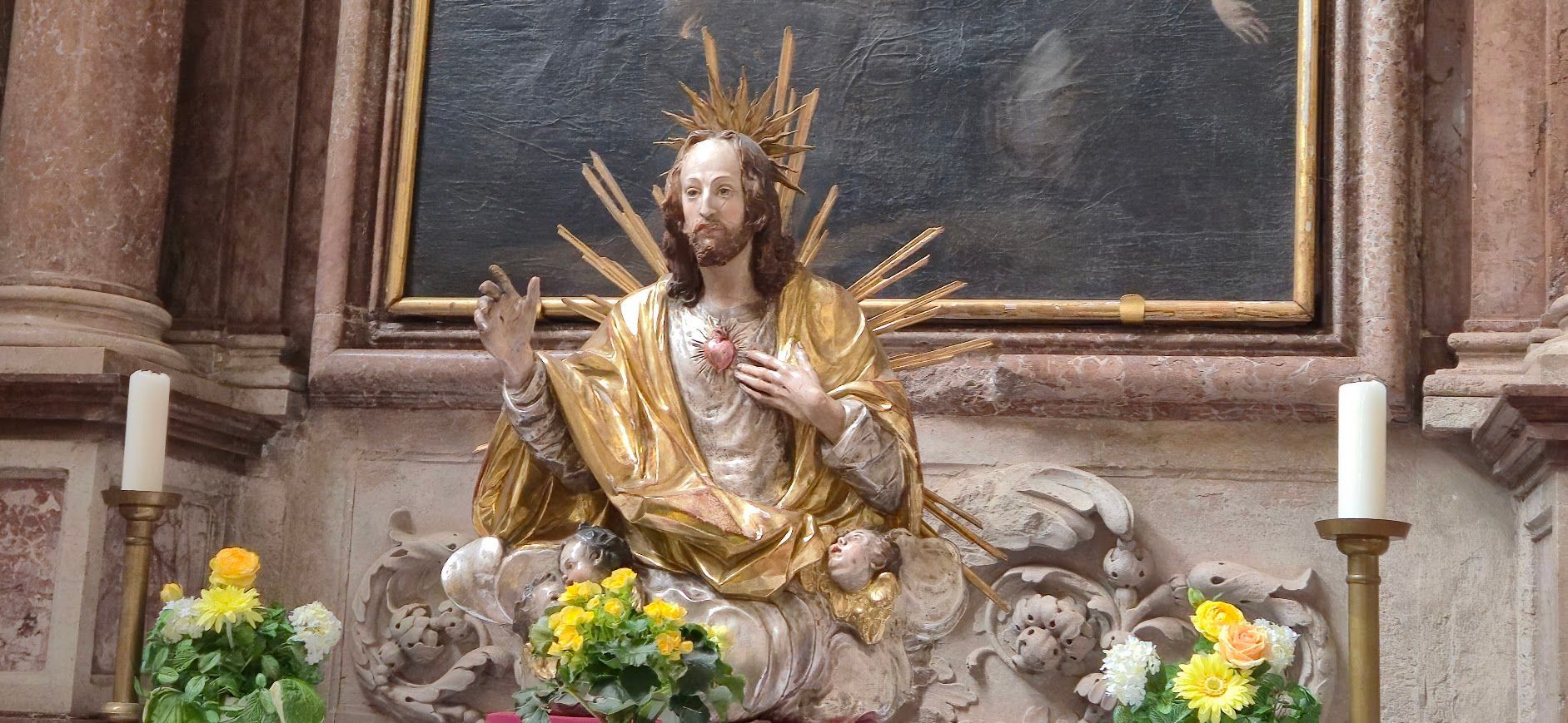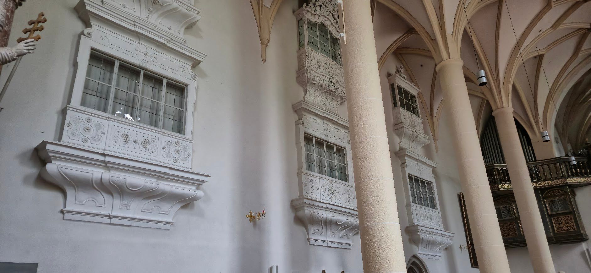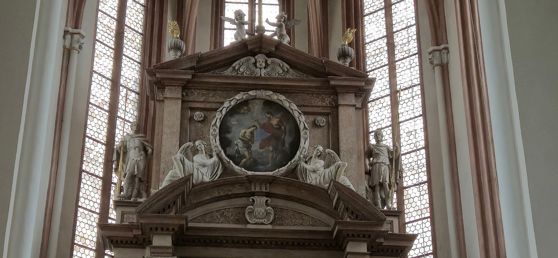 Binnen bevinden zich een rijk versierd koorgestoelte en verschillende praalgraven van vroegere stiftspröpsten.