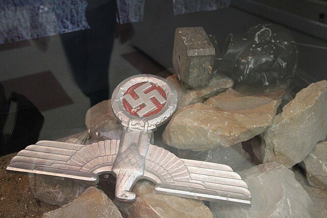 Een voorbeeld hiervan is het voormalige Postamt, waar in de jaren dertig een hakenkruisornament in de gevelsteen was verwerkt. Na de oorlog werd dit symbool verwijderd, maar wie goed kijkt ziet nog steeds de contouren van het uitgeslepen deel in de natuursteen — een stille herinnering aan de vroegere propagandistische architectuur.