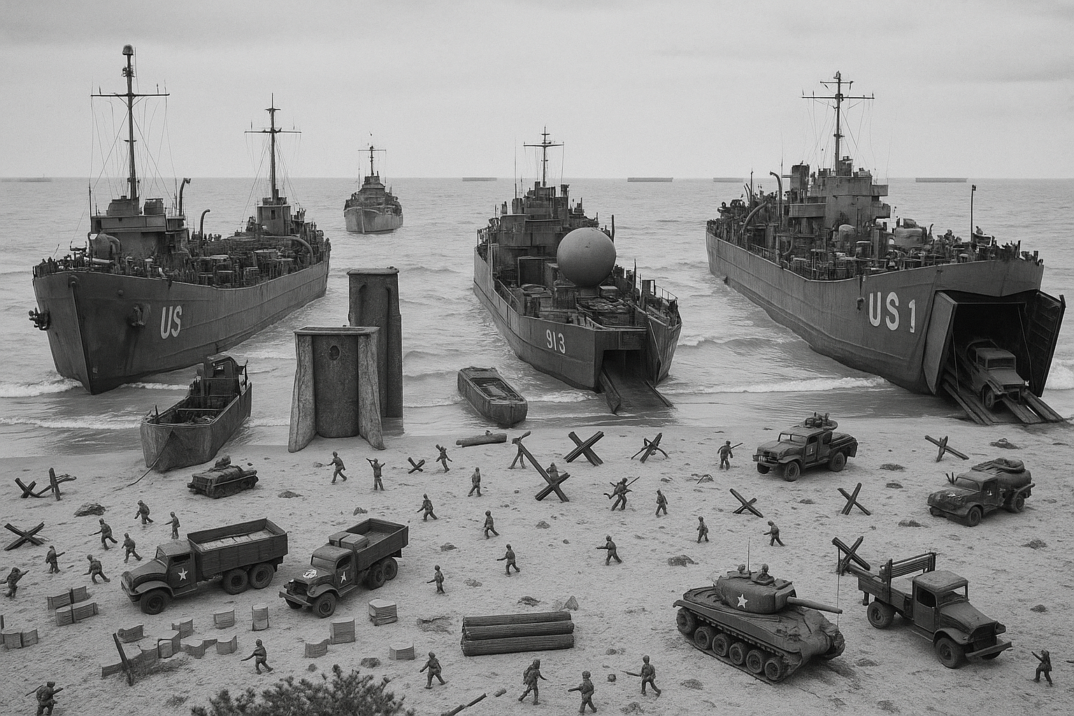 Toen de Mulberry A-haven bij Omaha Beach in de storm van 19–22 juni 1944 werd verwoest, moesten de Amerikanen improviseren. Ze stapten over op directe lossing op het strand: grote landingsschepen (LST’s) voeren tot aan het strand, waar tanks en vrachtwagens rechtstreeks konden uitrijden.