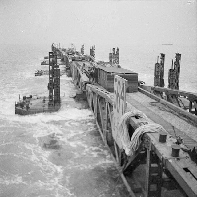 Kleinere vaartuigen en amfibische DUKW-vrachtwagens vervoerden voorraden van vrachtschepen naar de kust en verder het binnenland in. Overgebleven betonnen caissons vormden een soort golfbreker, zodat het lossen iets veiliger werd.