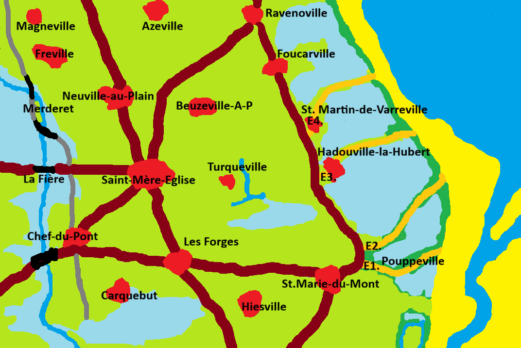 De Amerikaanse landing op Utah Beach op 6 juni 1944 vond oostelijker plaats dan oorspronkelijk gepland, vooral door sterke stroming en navigatiefouten. De namen van de landingsstroken – Tare Green, Uncle Sam en Victor – lagen al vast, maar schoven mee naar het oosten met de feitelijke landing. Deze verschuiving bleek gunstig: de troepen kwamen terecht in een gebied met minder Duitse verdediging, verder van Widerstandsnest 10 en 10a en buiten het directe bereik van de zware kustbatterijen bij Crisbecq en Azeville.