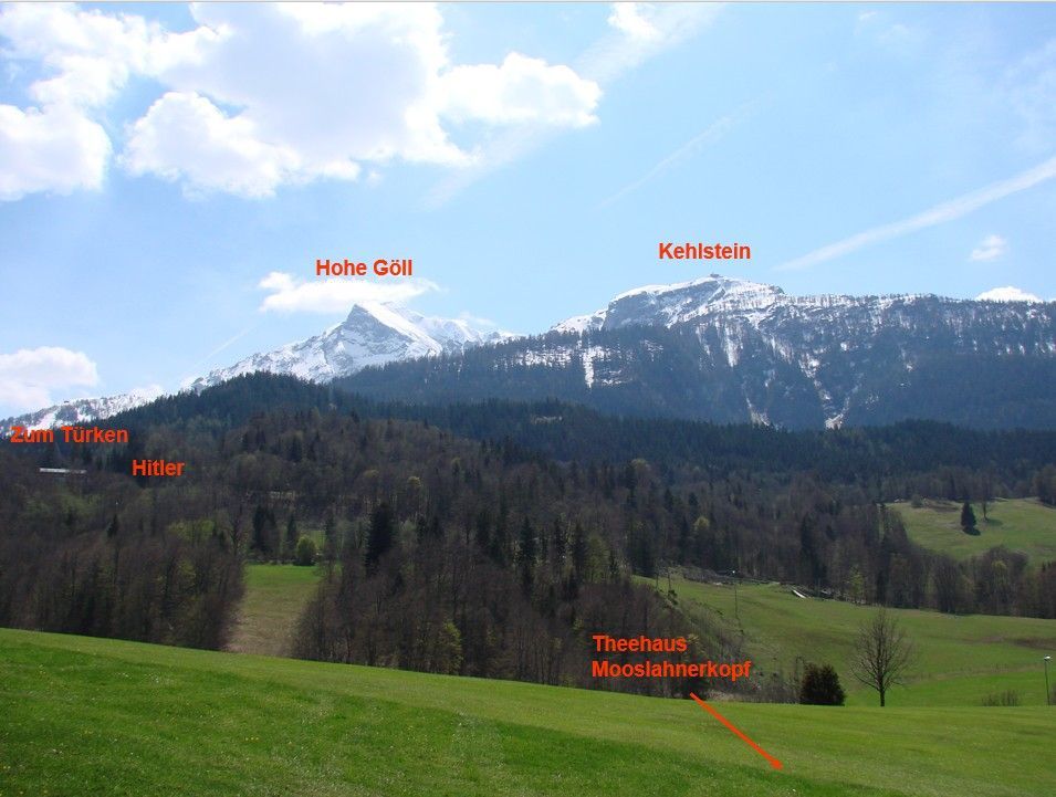 Ga je hier de helling af, dan zie je links een helling die naar de Berghof liep. Vanaf Hotel zum Turken loopt een wandelpad naar het Theehuis waar Hitler bijna dagelijks naar toe liep.