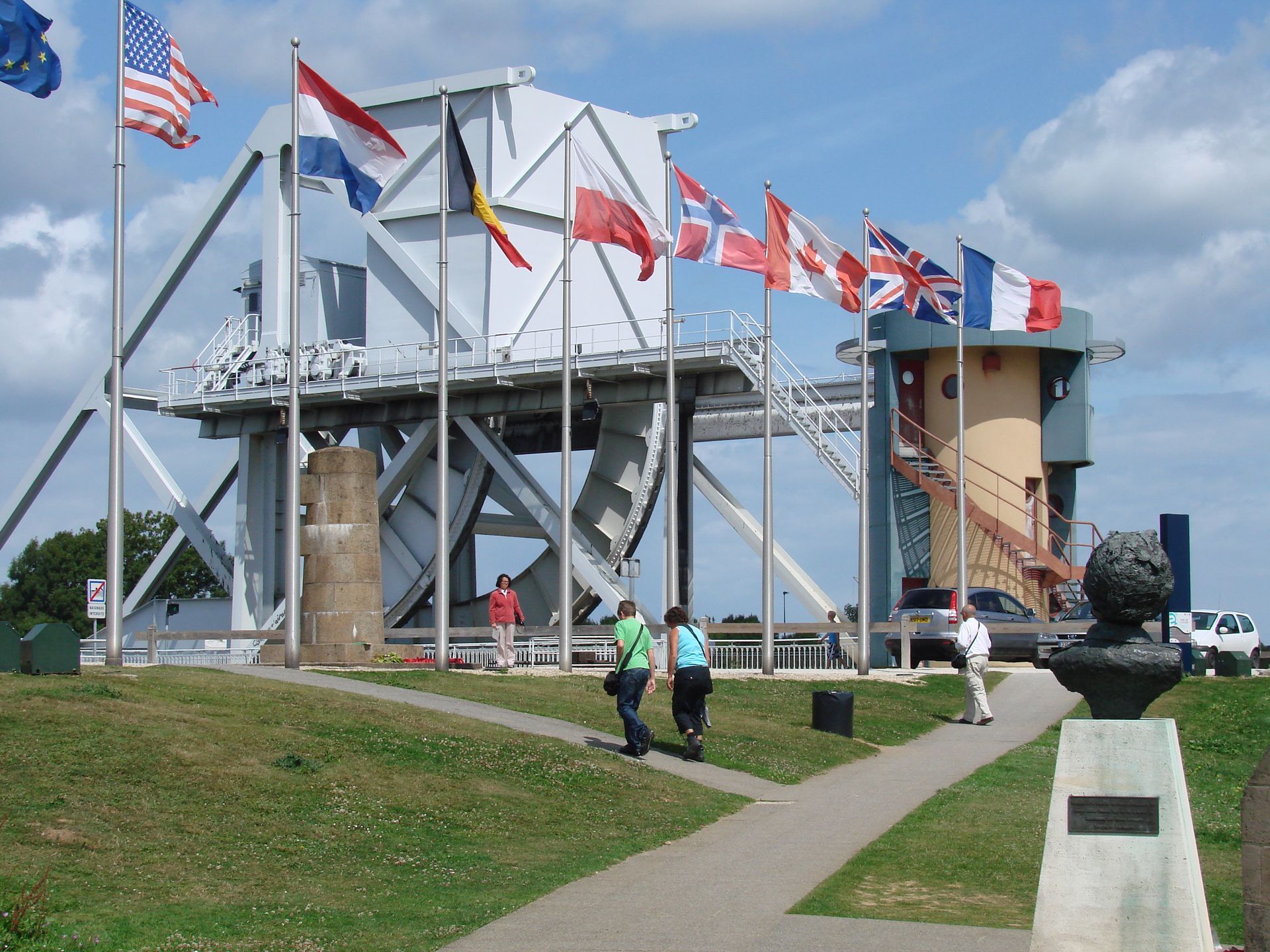 Naast het panoramische vergezicht bevindt zich een indrukwekkende beeldengroep, een eerbetoon aan de geallieerde soldaten die hier landden en vochten. De bronzen figuren, vastgelegd in het moment van actie, verbeelden kracht, samenwerking en opoffering. Ze brengen het verleden tastbaar dichtbij, temidden van de rust en de wind van de klif.