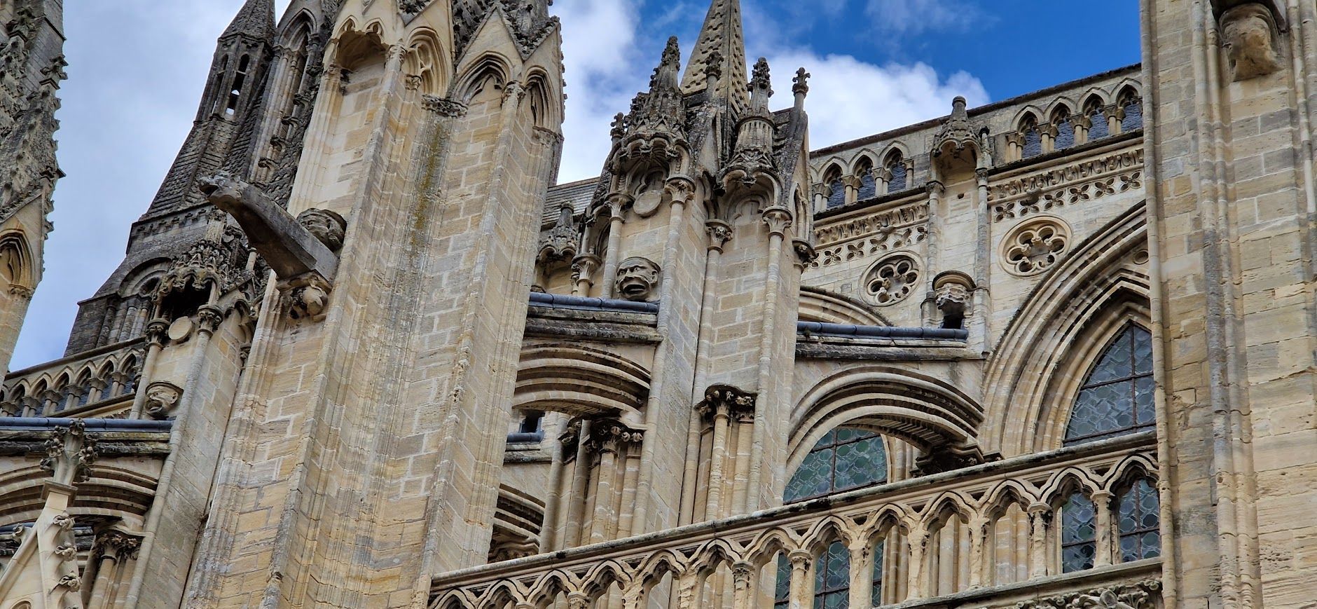 De kathedraal van Bayeux, is een indrukwekkend voorbeeld van Normandisch-gotische architectuur. Het bouwwerk, gewijd in 1077 in aanwezigheid van Willem de Veroveraar, domineert al eeuwenlang de skyline van de stad. Met haar elegante torens, rijk versierde gevels en hoge glas-in-loodramen vertelt de kathedraal de geschiedenis van geloof, kunst en macht in middeleeuws Frankrijk.