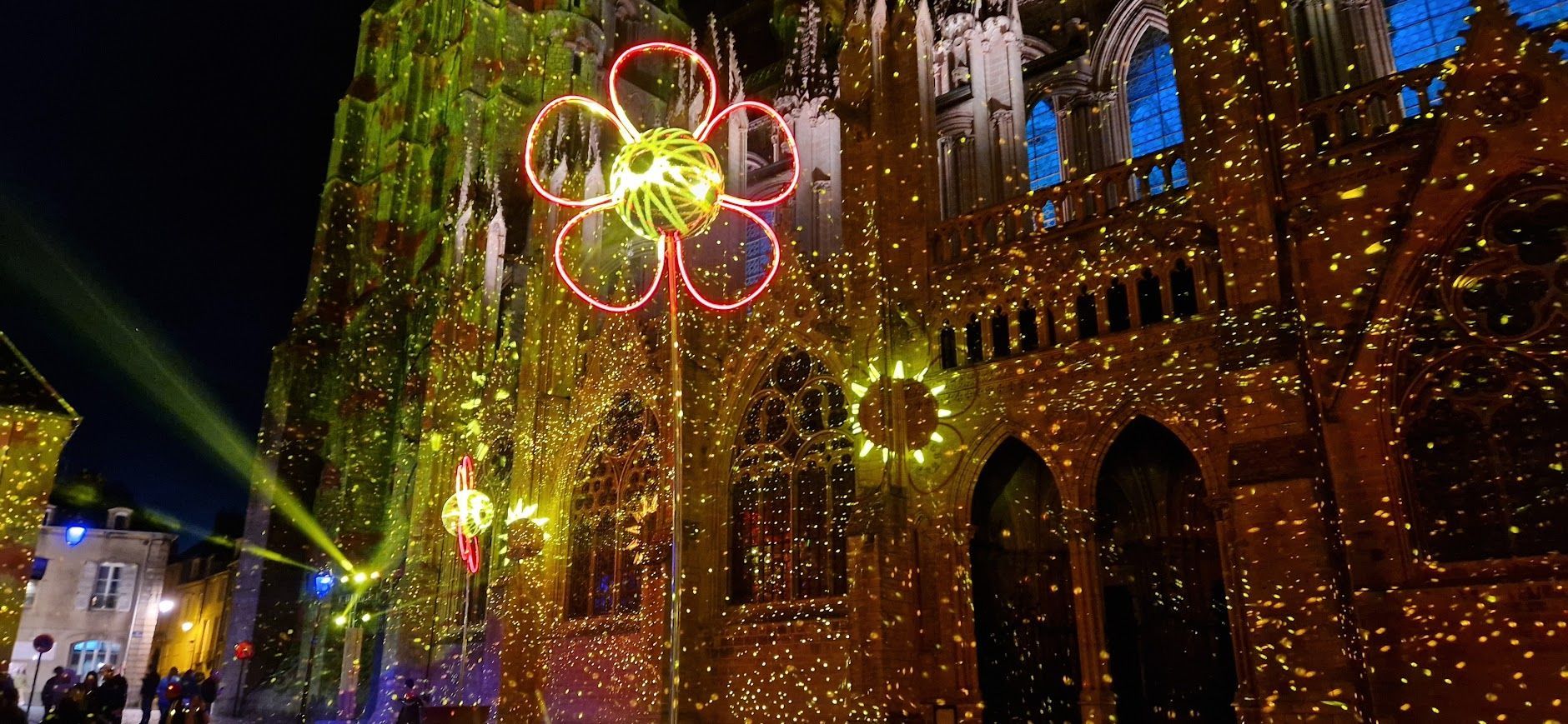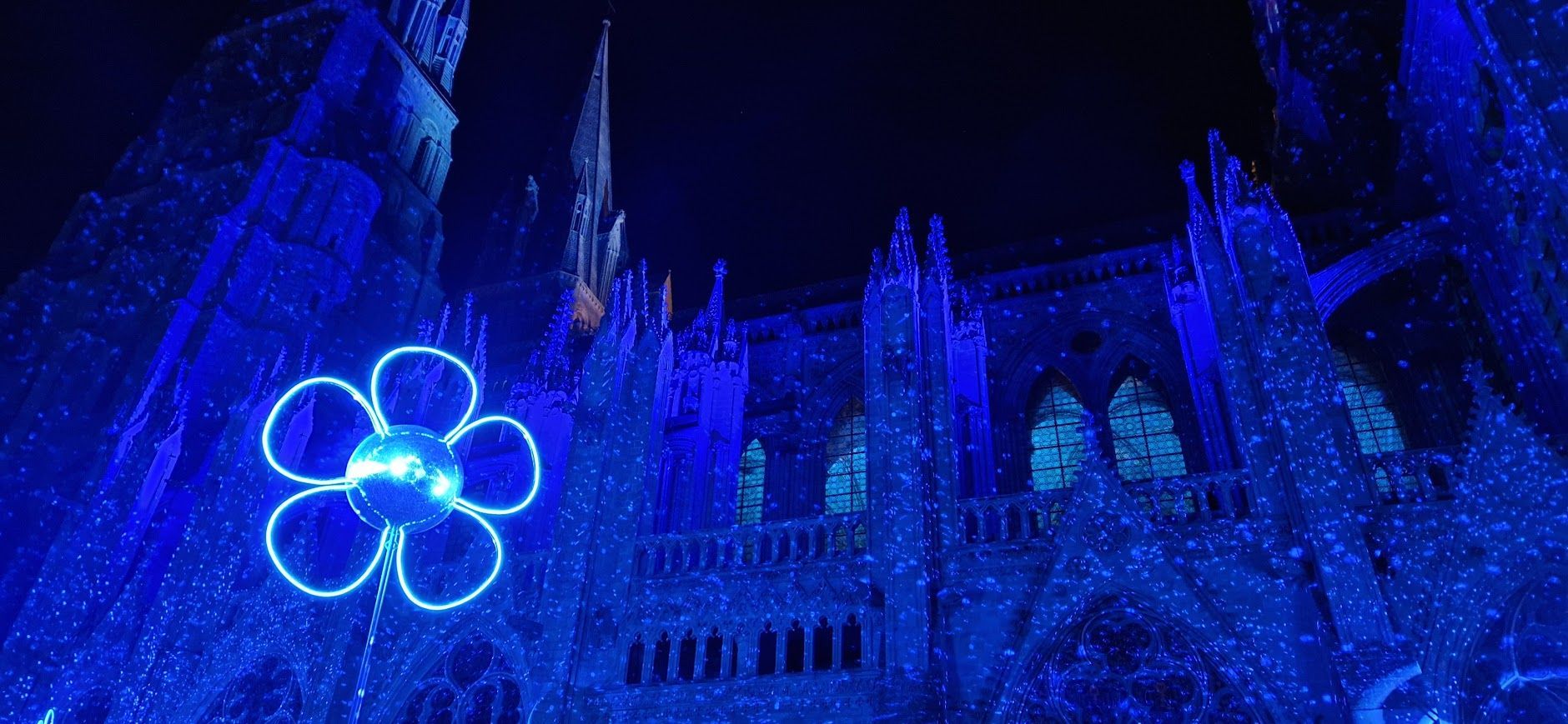 Vooral in de zomermaanden, wanneer lichtshows en culturele evenementen plaatsvinden, vormt de verlichte kathedraal een van de mooiste aanzichten van Normandië.
