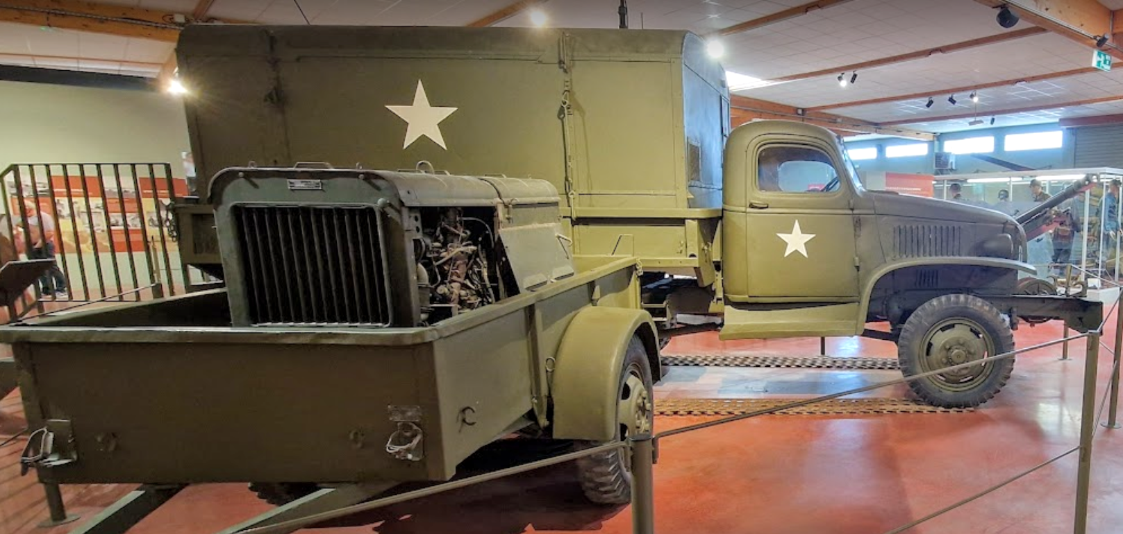 Grote diorama’s, filmbeelden en interactieve schermen helpen bezoekers het verloop van de strijd te volgen — van de landingen op D-Day tot de bevrijding van Caen en de Slag om de Zak van Falaise.