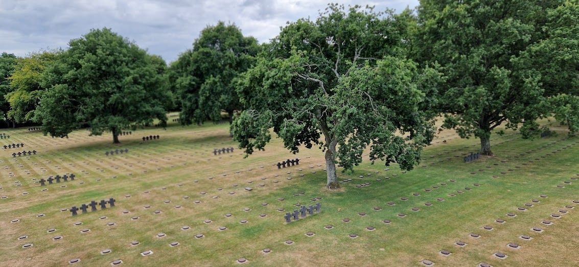 De Begraafplaats La Cambe ligt in het Normandische landschap en is een van de grootste Duitse militaire begraafplaatsen van Frankrijk. Hier rusten meer dan 21.000 Duitse soldaten die sneuvelden tijdens de Slag om Normandië in 1944. De sobere kruisen, de centrale grafheuvel en de rustige omgeving maken La Cambe tot een plek van bezinning en herinnering, waar de menselijke tol van oorlog tastbaar wordt.