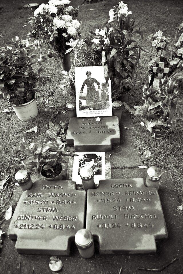 Wittmann was SS-Hauptsturmführer, tankcommandant binnen de 1e SS-Pantserdivisie Leibstandarte SS Adolf Hitler. In nazi-Duitsland werd hij verheven tot icoon na zijn actie bij Villers-Bocage op 13 juni 1944, waar hij in korte tijd een reeks Britse tanks en voertuigen uitschakelde. Propaganda maakte van hem een “legende”. De begraafplaats maakt van die legende weer een mens — begrensd door aarde.