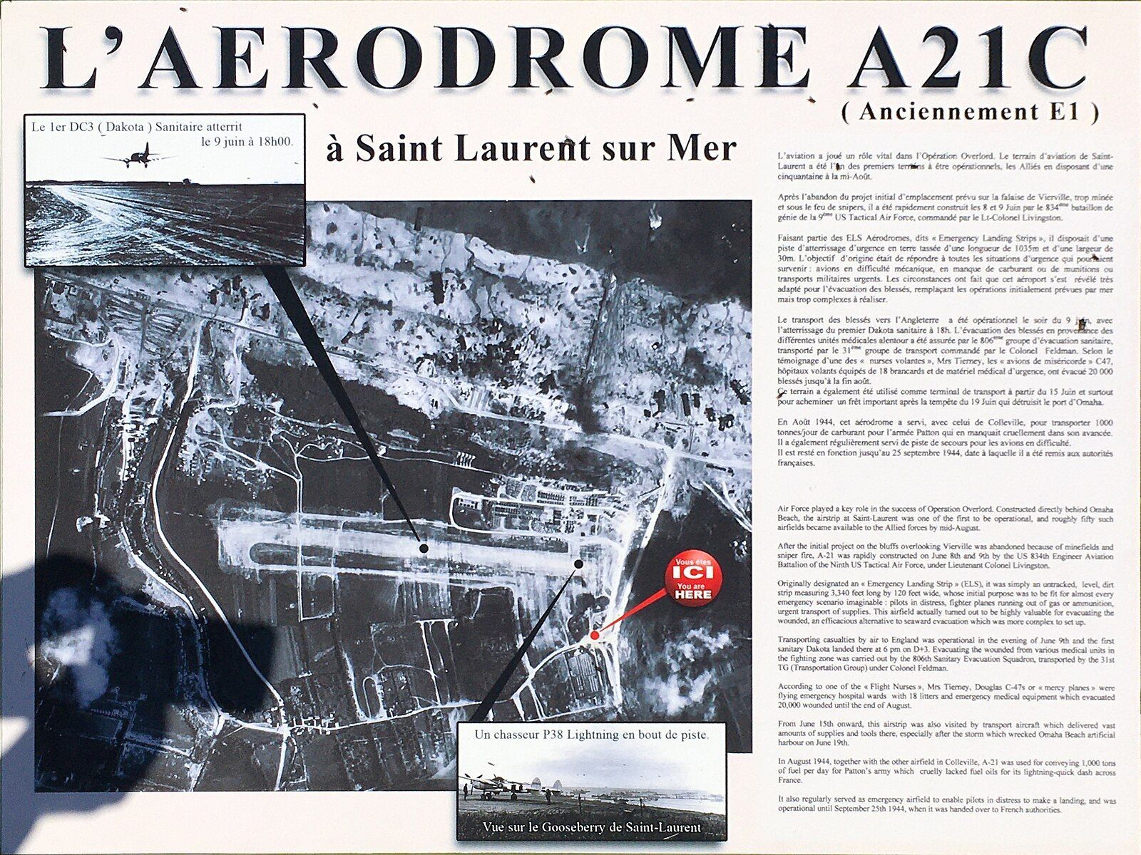 Op 12 juni 1944 openden de geallieerden ALG A-21C bij Saint-Laurent-sur-Mer, een snel aangelegde vliegstrip vlak achter Omaha Beach. Het veld diende vooral voor het evacueren van gewonden en het ondersteunen van de 9th US Air Force. Topofficieren zoals generaal Hap Arnold en generaal Brereton bezochten de locatie om het belang van de baan te onderstrepen.