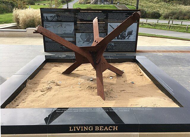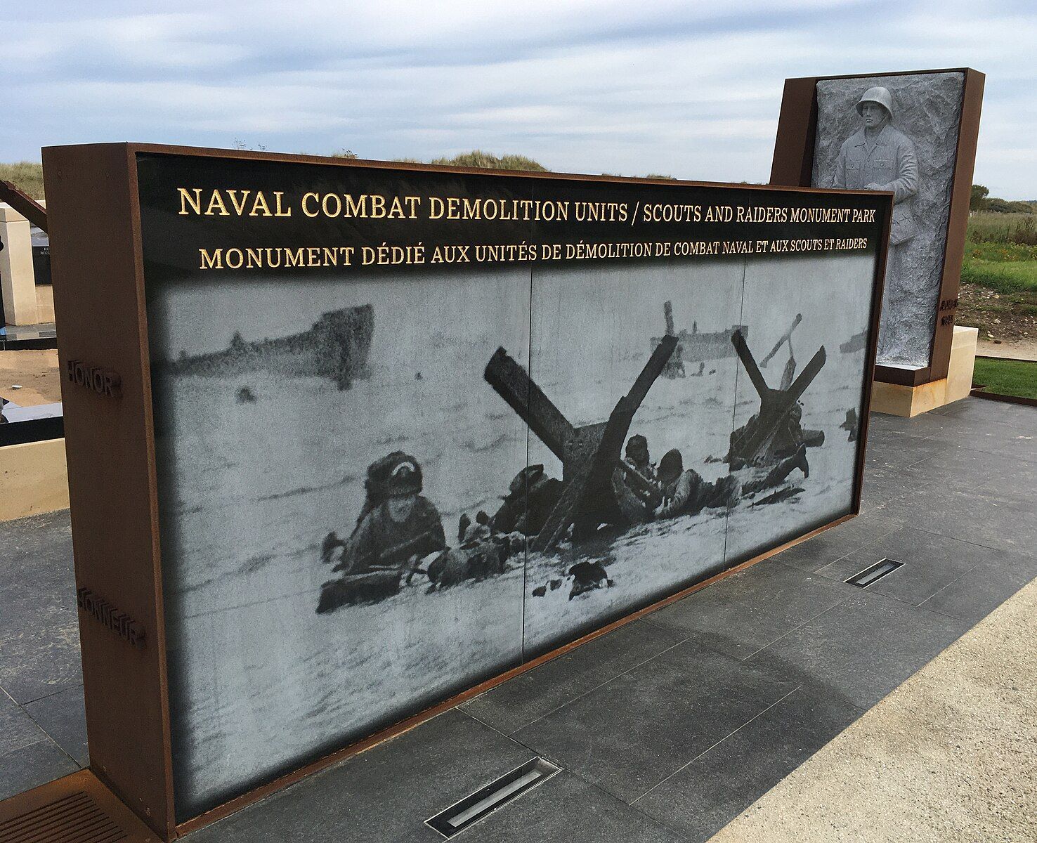 Het Monument voor de Naval Combat Demolition Units (NCDU) in Saint-Laurent-sur-Mer, aan de Dog Red-sector van Omaha Beach, eert de Amerikaanse marinemannen die op D-Day een van de gevaarlijkste taken van de hele invasie uitvoerden. Deze kleine teams van ‘frogmen’, voorlopers van de huidige Navy SEALs, landden al vroeg in de ochtend van 6 juni 1944 om onder vijandelijk vuur strandobstakels, mijnen en stalen versperringen te vernietigen. Hun werk moest in enkele minuten gebeuren, anders konden de troepen en landingsvaartuigen achter hen de kust niet bereiken.