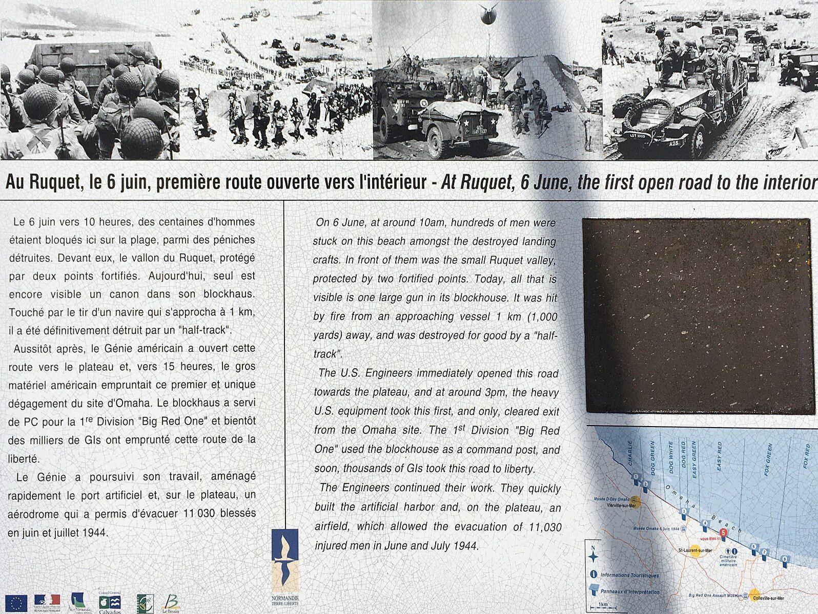 Het monument in Saint-Laurent-sur-Mer staat vlak boven het strand waar deze mannen hun missie uitvoerden. Het is een ingetogen, waardige plek die bezoekers herinnert aan de cruciale maar vaak onderbelichte rol van deze eenheden. Tussen het geluid van wind en golven nodigt het uit tot reflectie op de moed en het offer van de mannen die hier de poort naar de vrijheid openden.