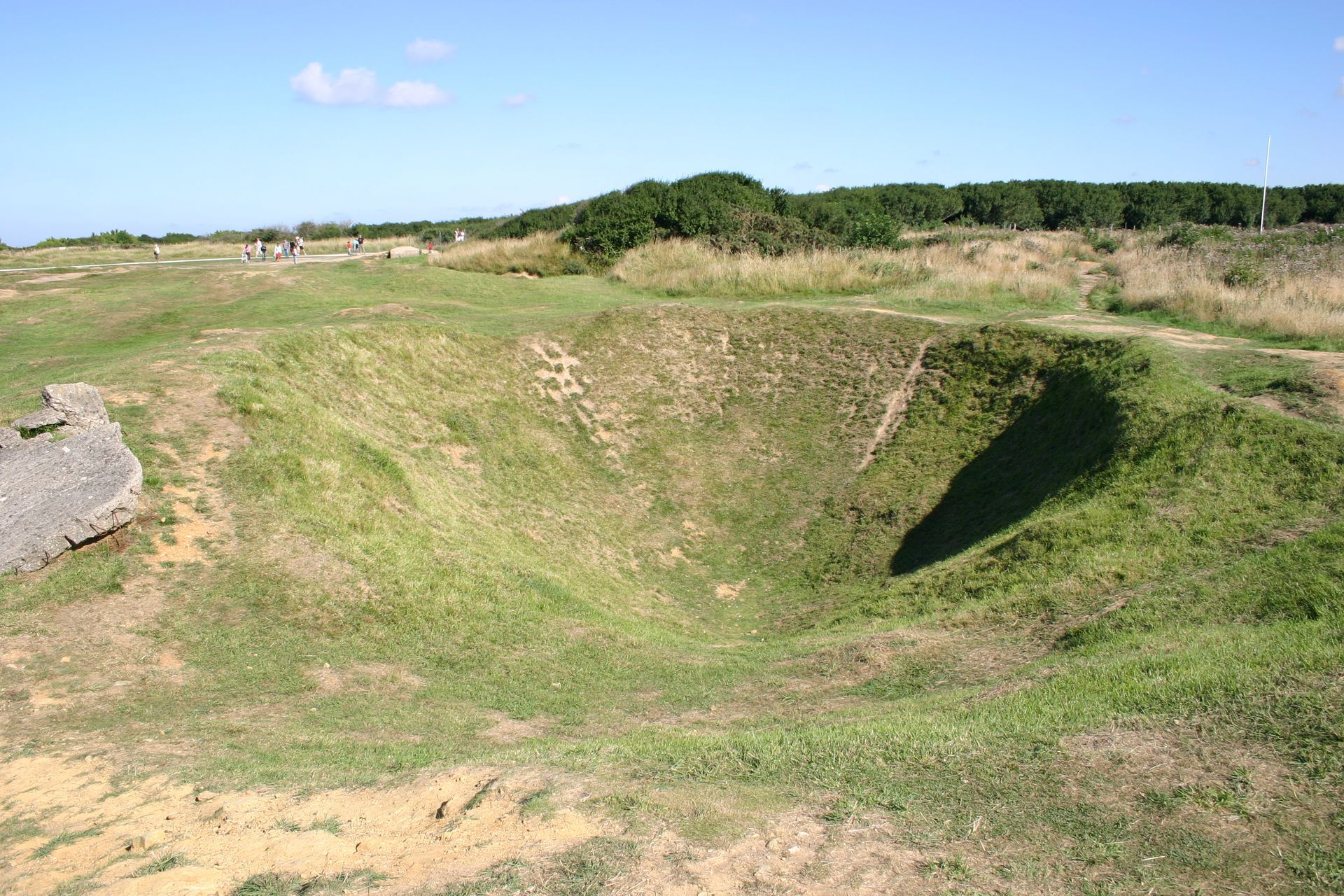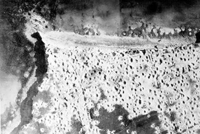 Foto 3: Maanlandschap door de bombardementen bij Pointe-du Hoc Public domain - Pointe_du_hoc3