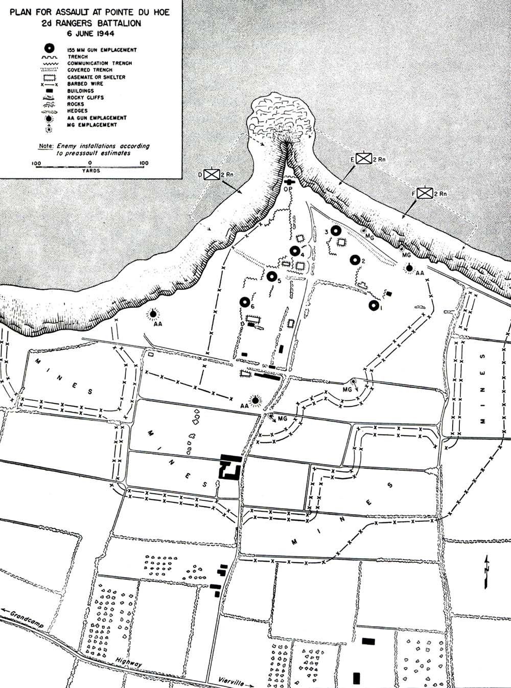 Ondanks intensieve lucht- en zeebombardementen bleek Pointe du Hoc hierdoor te sterk om alleen vanuit zee uitgeschakeld te worden. De taak om het complex in te nemen werd toevertrouwd aan het US 2nd Ranger Battalion, bestaande uit ongeveer 225 elite-soldaten, onder leiding van luitenant-kolonel James Earl Rudder. De Rangers trainden maandenlang, onder andere op de Isle of Wight, waar zij het beklimmen van steile kliffen oefenden met touwen en ladders.