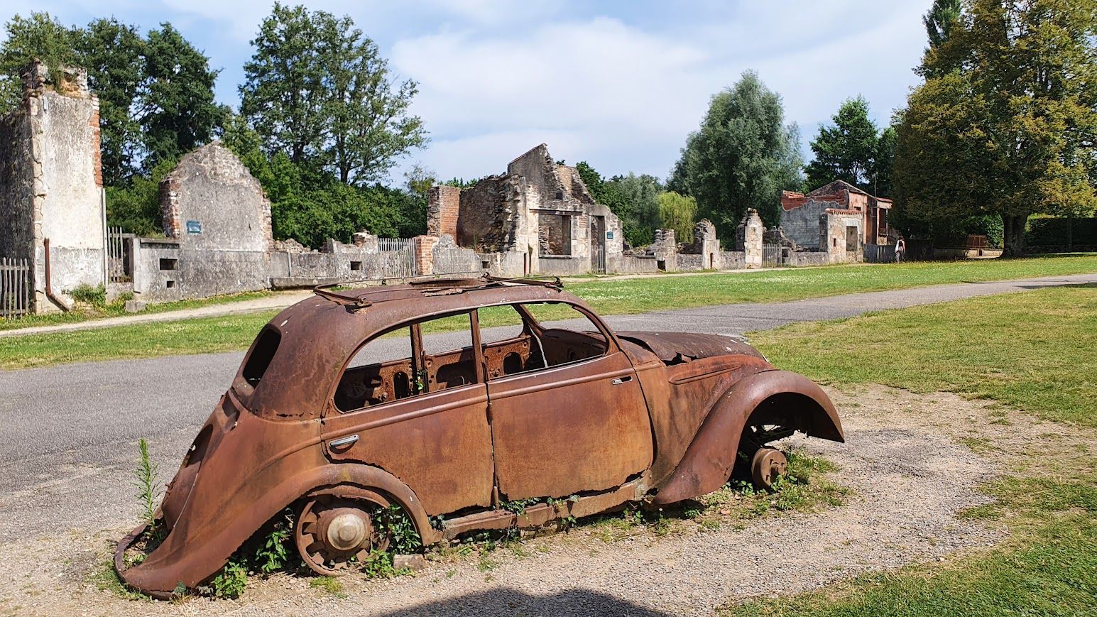 Reeds in 1945 besloot de Franse regering Oradour-sur-Glane onveranderd te bewaren. De ruïnes bleven liggen zoals ze waren – verkoolde muren, fietsen, ovens, de auto van dorpsdokter Paul Desourteaux, die met zijn gezin werd vermoord.