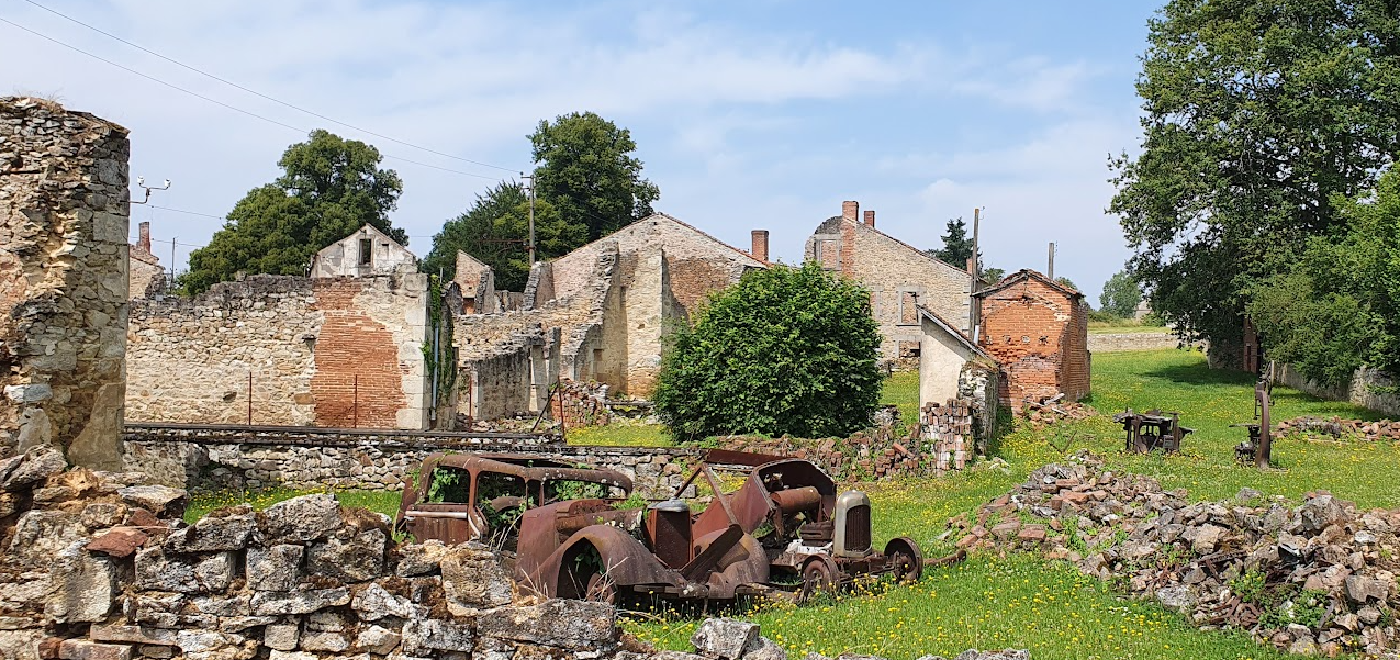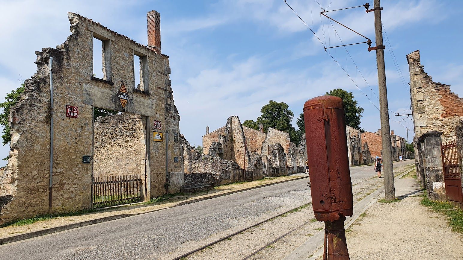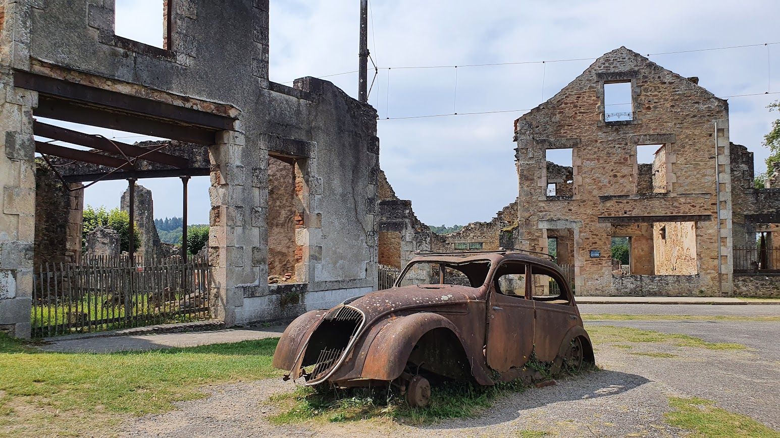 In het rustige Franse platteland ligt een spookdorp, bevroren in de tijd sinds een van de gruwelijkste oorlogsmisdaden van de Tweede Wereldoorlog.