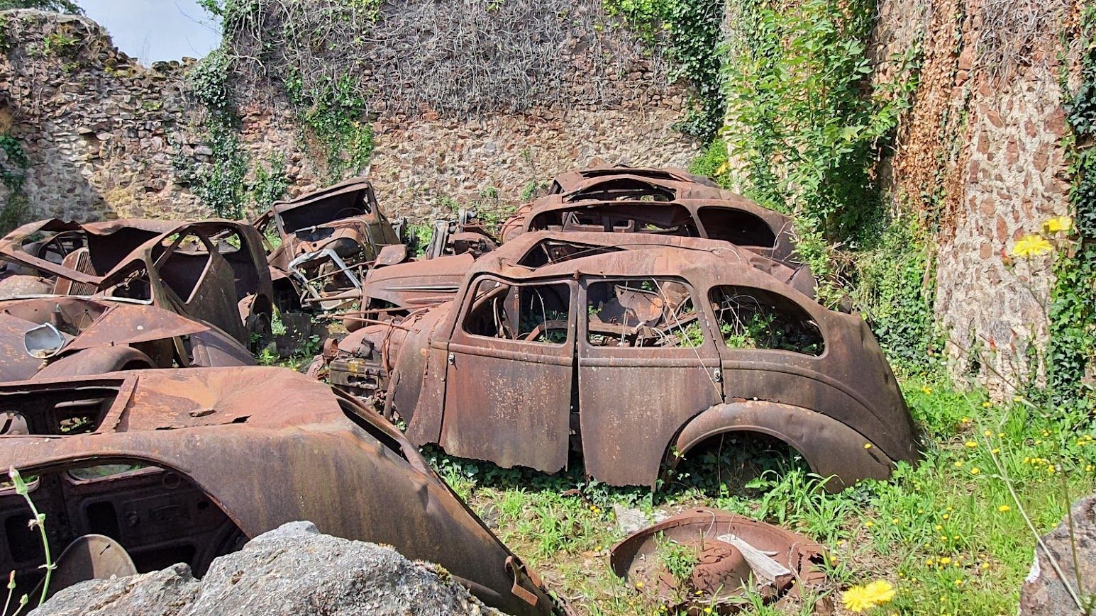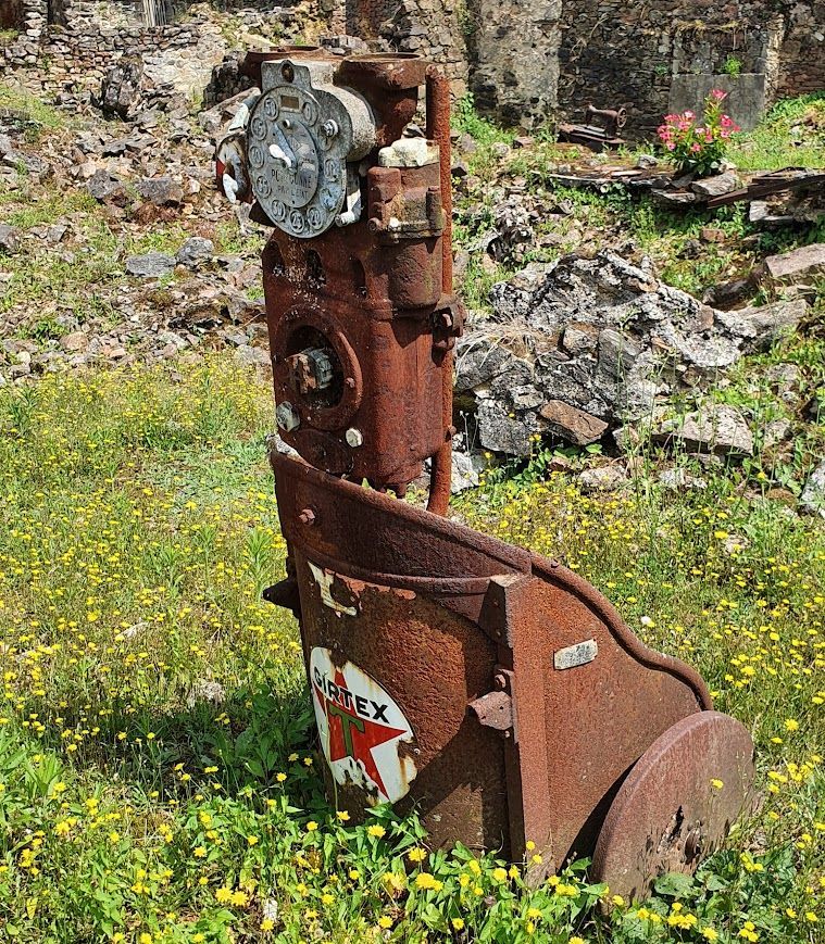 De paden leiden langs verbrande gevels, roestige gereedschappen en de kerk waar nog altijd de geblakerde klokken hangen.