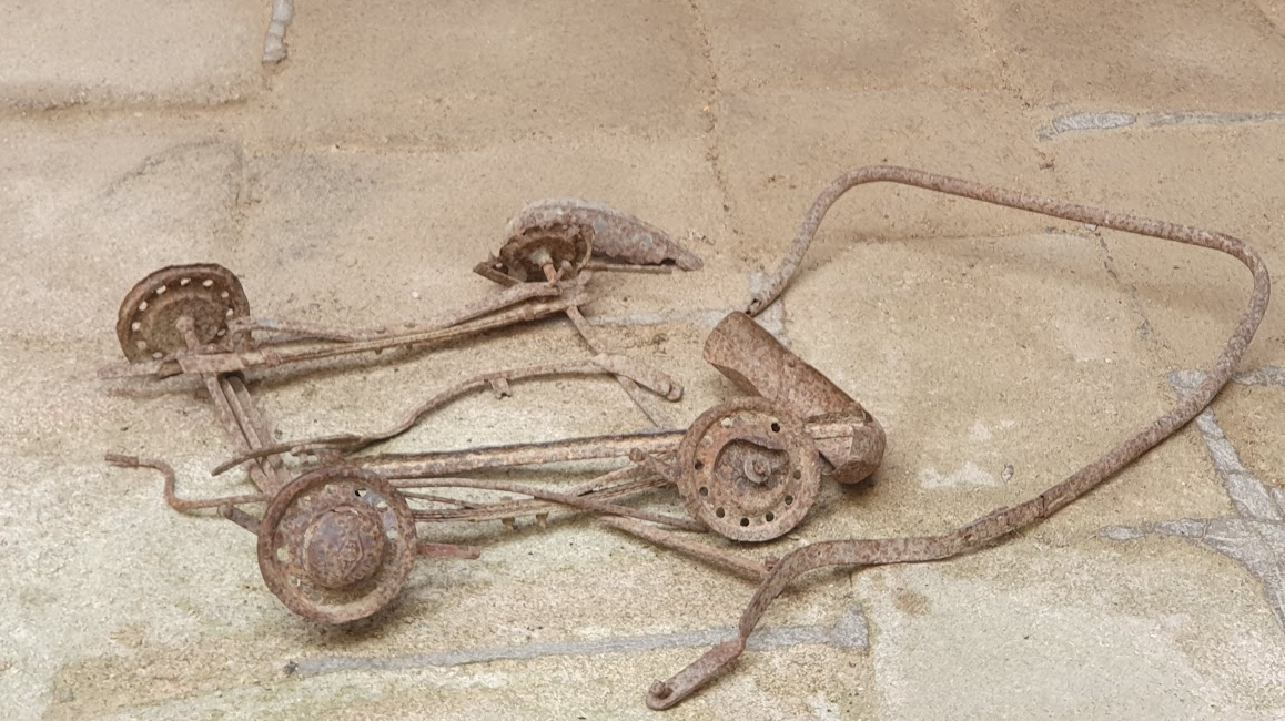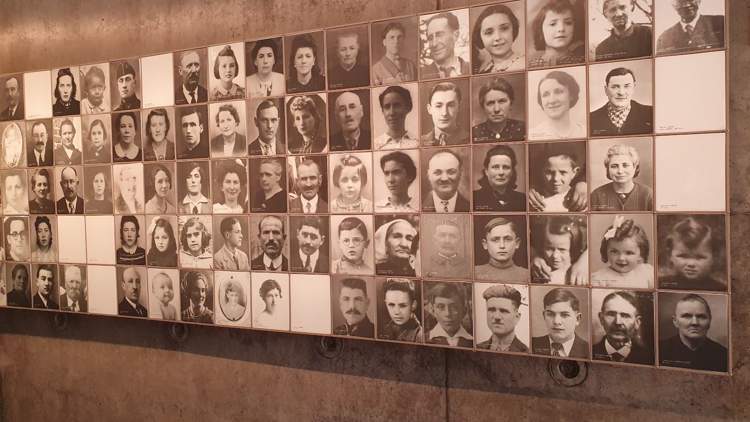 In het bezoekerscentrum van het herdenkingsdorp is een verroeste kinderwagen te zien, doorzeefd met kogelgaten. Het stille symbool van de onschuld die die dag werd vernietigd.