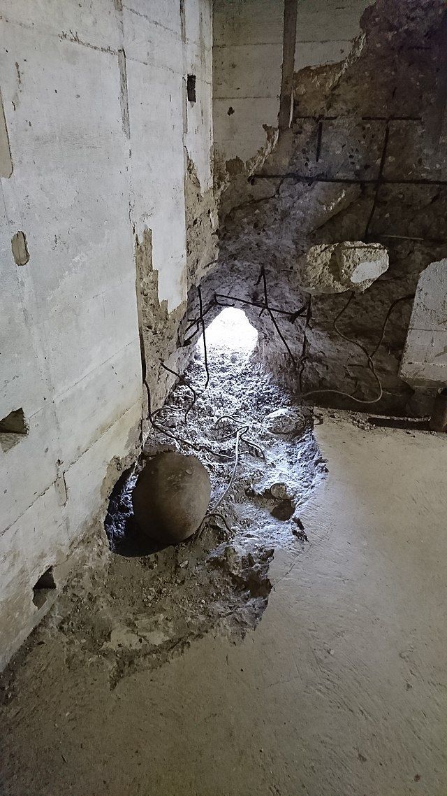 Foto 6 Inslag van 35,6 cm granaat van kruiser USS Nevada in Kazemat Crisbecq Batterie in kazemat 1, type H669